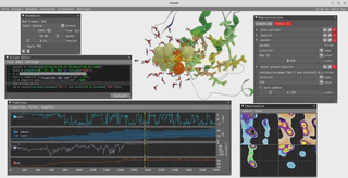 VIAMD is an interactive analysis tool for molecular dynamics (MD) written in C/C++. VIAMD is developed at the PDC Center for High Performance Computing (KTH, Stockholm). It exposes a rudementary script language that is used to declare operations which are performed over the frames of the trajectory. The results can then be viewed in the different windows exposed in the application.